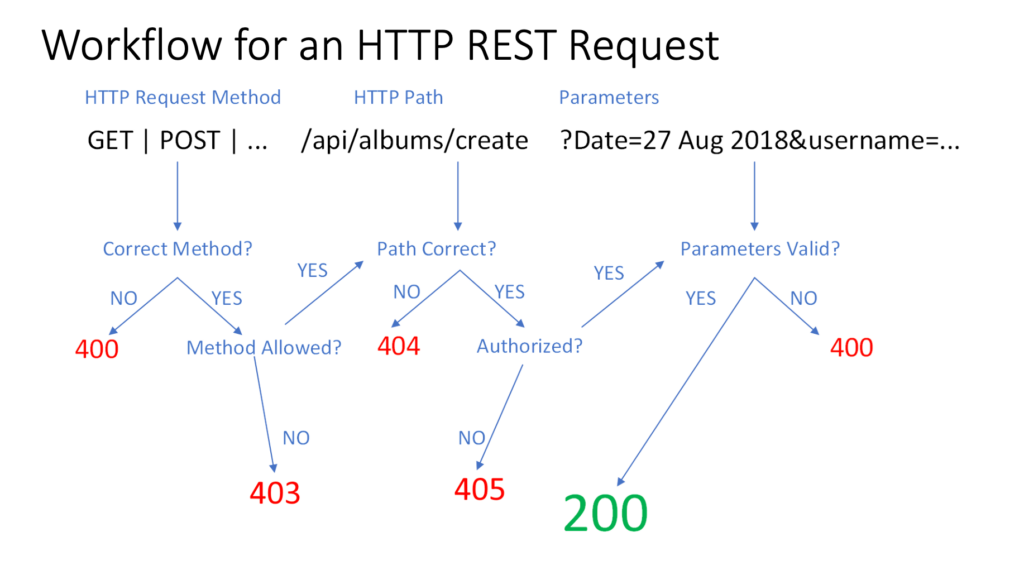 Below is the process I use when thinking about creating new RESTful APIs. It follows a logic review, ensuring I respond with the best HTTP response code.